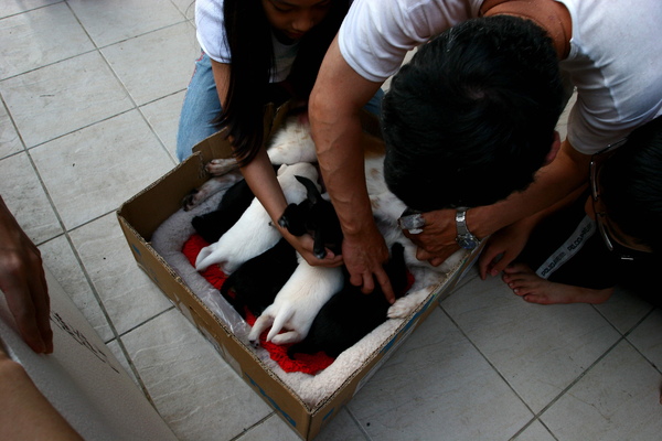 #27 圖中就是我的愛心鄰居-廖大哥,這一家正忙著幫搶不到奶喝的小狗狗喬位置~